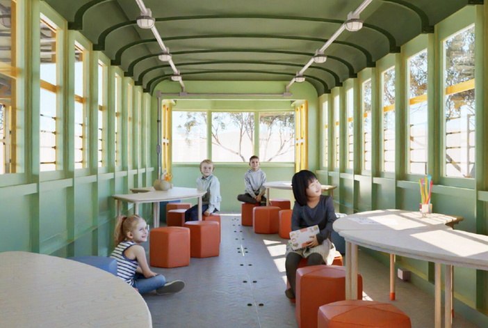 Internamente, os bondes serão completamente repaginados com a instalação de um novo piso, permitindo que os espaços sejam utilizados para as atividades do museu. Também será feita uma nova cromia nas paredes e no forro. Móveis como mesas educacionais modulares e pufes irão compor o ambiente interno, pensado especialmente para o uso infantil.
